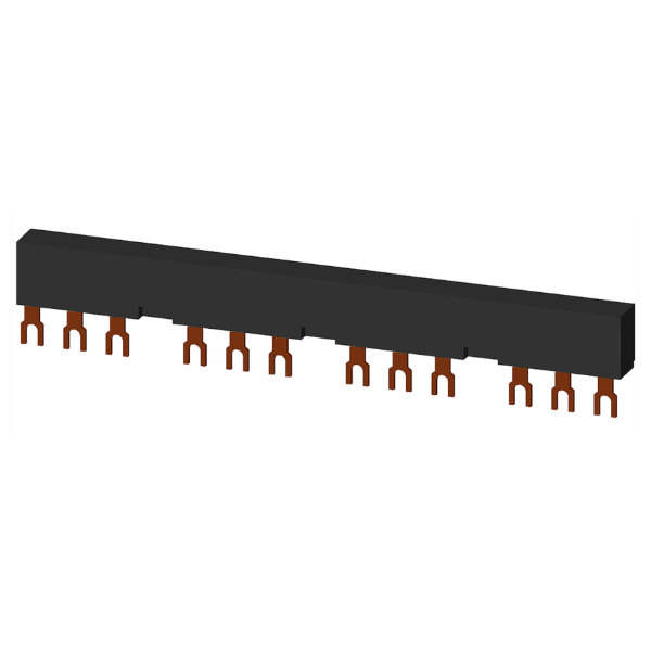 Embarrados trifásicos Distancia entre dientes 55 mm para 4 interruptores+accesorios Conexiones con forma de horquilla