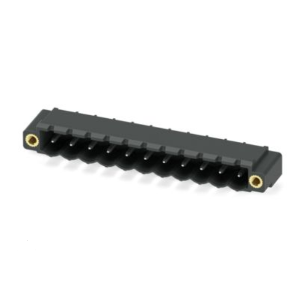 Conectores PCB, sección transversal nominal: 2,5 mm² , color: negro, corriente nominal: 12 A, tensión nominal (III/2): 320 V, superficie de contacto: Sn, tipo de conexión de contacto: Pin, número de potenciales: 11, número de filas: 1, número de posiciones: 11, número de conexiones: 11, gama de productos: CC 2,5/..-GF-LR, paso: 5 mm, montaje: soldadura THR / soldadura por ola, disposición de pines: pines lineales, pin de soldadura [P]: 2 mm, número de pines de soldadura por potencial: 1, sistema de conexión: COMBICON MSTB 2,5, alineación del patrón del conector de pines: estándar, bloqueo: sistema de bloqueo y liberación, método de montaje: brida roscada de bloqueo y liberación, tipo de embalaje: embalado en cartón.