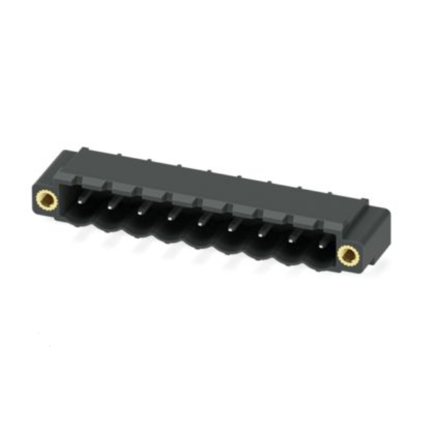 Conectores PCB, sección transversal nominal: 2,5 mm² , color: negro, corriente nominal: 12 A, tensión nominal (III/2): 320 V, superficie de contacto: Sn, tipo de conexión de contacto: Pin, número de potenciales: 9, número de filas: 1, número de posiciones: 9, número de conexiones: 9, gama de productos: CC 2,5/..-GF-LR, paso: 5 mm, montaje: soldadura THR / soldadura por ola, disposición de pines: pines lineales, pin de soldadura [P]: 2 mm, número de pines de soldadura por potencial: 1, sistema de conexión: COMBICON MSTB 2,5, alineación del patrón del conector de pines: estándar, bloqueo: sistema de bloqueo y liberación, método de montaje: brida roscada de bloqueo y liberación, tipo de embalaje: embalado en cartón.