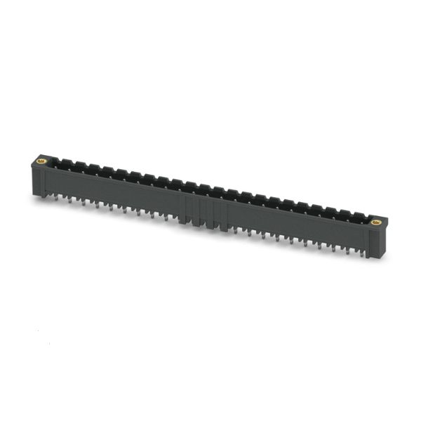 Conectores PCB, sección transversal nominal: 2,5 mm² , color: negro, corriente nominal: 12 A, tensión nominal (III/2): 320 V, superficie de contacto: Sn, tipo de conexión de contacto: Pin, número de potenciales: 24, número de filas: 1, número de posiciones: 24, número de conexiones: 24, gama de productos: CCV 2,5/..-GF-LR, paso: 5 mm, montaje: soldadura THR / soldadura por ola, disposición de pines: pines lineales, pin de soldadura [P]: 2 mm, número de pines de soldadura por potencial: 1, sistema de conexión: COMBICON MSTB 2,5, alineación del patrón del conector de pines: estándar, bloqueo: sistema de bloqueo y liberación, método de montaje: brida roscada de bloqueo y liberación, tipo de embalaje: embalado en cartón.