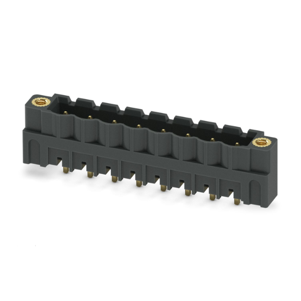 Conectores PCB, sección transversal nominal: 2,5 mm² , color: negro, corriente nominal: 12 A, tensión nominal (III/2): 320 V, superficie de contacto: Sn, tipo de conexión de contacto: Pin, número de potenciales: 8, número de filas: 1, número de posiciones: 8, número de conexiones: 8, gama de productos: CCV 2,5/..-GF-LR, paso: 5,08 mm, montaje: soldadura THR / soldadura por ola, disposición de pines: pines lineales, pin de soldadura [P]: 2,6 mm, número de pines de soldadura por potencial: 1, sistema de conexión: COMBICON MSTB 2,5, alineación del patrón del conector de pines: estándar, bloqueo: sistema de bloqueo y liberación, método de montaje: brida roscada de bloqueo y liberación, tipo de embalaje: embalado en cartón.