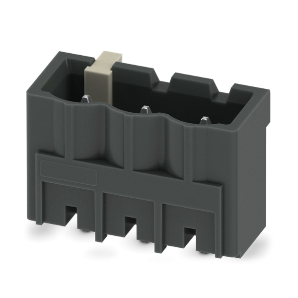 Conectores PCB, sección transversal nominal: 2,5 mm² , color: negro, corriente nominal: 12 A, tensión nominal (III/2): 320 V, superficie de contacto: Sn, tipo de conexión de contacto: Pin, número de potenciales: 3, número de filas: 1, número de posiciones: 3, número de conexiones: 3, gama de productos: CCVA 2,5/..-G, paso: 5,08 mm, montaje: soldadura THR / soldadura por ola, disposición de pines: pines lineales, pin de soldadura [P]: 1,4 mm, número de pines de soldadura por potencial: 1, sistema de conexión: COMBICON MSTB 2,5, alineación del patrón del conector de pines: estándar, bloqueo: sin bloqueo, método de montaje: sin bloqueo, tipo de embalaje: cinta de 32 mm de ancho.