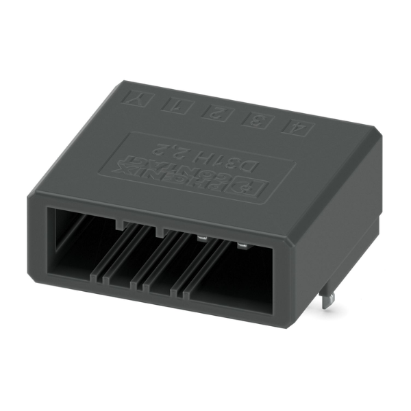 Conectores PCB, color: negro, corriente nominal: 8 A, tensión nominal (III/2): 160 V, superficie de contacto: Sn, tipo de conexión de contacto: Pin, número de filas: 1, número de posiciones: 4, gama de productos: D31H 2,2/..-H, paso: 3,81 mm, montaje: soldadura por ola, disposición de pines: pines lineales, pin de soldadura [P]: 3,8 mm, número de pines de soldadura por potencial: 1, sistema de conexión: CONNEXIS D, alineación del patrón del conector de pines: estándar, bloqueo: bloqueo a presión, método de montaje: nariz de acoplamiento, tipo de embalaje: embalado en cartón.
