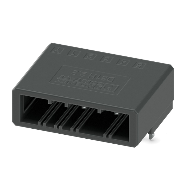 Conectores PCB, color: negro, corriente nominal: 8 A, tensión nominal (III/2): 160 V, superficie de contacto: Sn, tipo de conexión de contacto: Pin, número de filas: 1, número de posiciones: 5, gama de productos: D31H 2,2/..-H, paso: 3,81 mm, montaje: Soldadura por ola, disposición de pines: Alineación lineal, pin de soldadura [P]: 3,8 mm, número de pines de soldadura por potencial: 1, sistema de conexión: CONNEXIS D, alineación del patrón del conector de pines: Estándar, bloqueo: Bloqueo a presión, método de montaje: Punta de acoplamiento, tipo de embalaje: embalado en cartón.