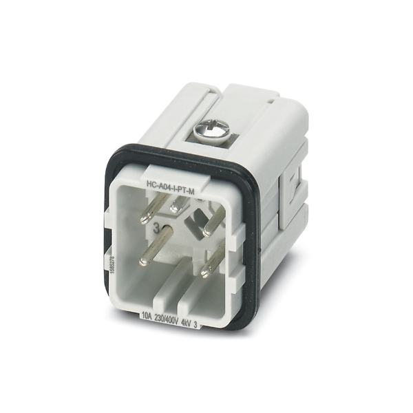 Inserto de contacto, número de posiciones: 4+PE, tamaño: D7, número de conexiones por posición: 1, pin, conexión a presión, 230 V/400 V, 10 A, 0,14 mm² … 1,5 mm²