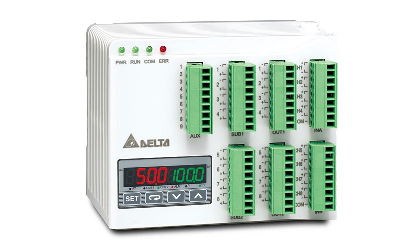 La serie DTE es un controlador de temperatura modular multi-canal que admite un máximo de 8 grupos de entrada de resistencia termopar/platino. La instalación de los carriles DIN ahorra cables, y el controlador en cada canal puede funcionar de forma independiente al mismo tiempo. DTE ofrece varias módulos de salida (relé, pulso de voltaje, salida de corriente y salida de tensión lineal). La comunicación incorporada de 2-cables puertos RS-485 puede alcanzar una velocidad en baudios de 115.200 bps. En el control programable, DTE puede configurar hasta 64 grupos de diferente temperatura y tiempo de control. Además, los controladores máximos 7 DTC2000 son extensibles a DTE, y DTE es compatible con la función de configuración de ID automática y protocolo de comunicación síncrona que también es compatible con la serie DTC.