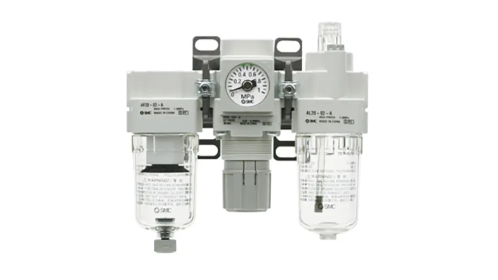 unidad combinada modular que incorpora un filtro de aire, un regulador de presión y un lubricador