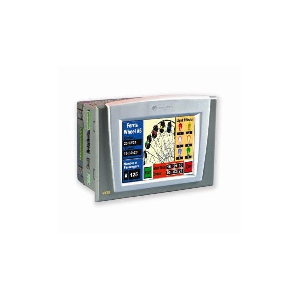 Controlador lógico programable (PLC) avanzado integrado con una pantalla táctil a color.