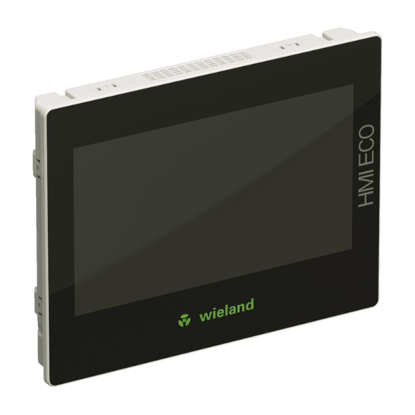 HMI-ECO-070. Pantalla táctil HMI Eco, 7 pulgadas, wide screen, TFT, 800×480 Pixel, IP66 frontal, 64 MB RAM, USB Host/Client, Ethernet, Modbus TCP, Programable con el software hmiPLAN. Wieland