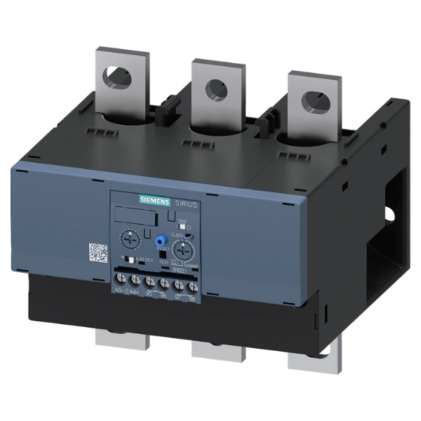 Relé de sobrecarga 160…630 A para protección de motores Tamaño S10/S12, CLASE 5…30E Montaje en contactor/independiente Circuito principal:conexión para barra circuito auxiliar: bornes de tornillo REARME manual/automático detección interna de defectos a tierra