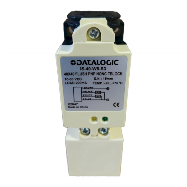 Sensor Inductivo 40×40 4 Hilos 12-24VCC 1NA + 1NC Rasante 15mm Plastico Datalogic