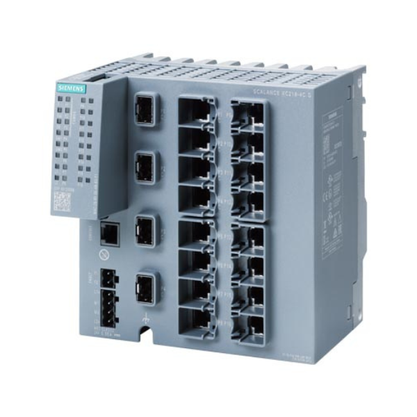 Switch IE gestionable de capa 2 SCALANCE XC216-4C G; certificación IEC 62443-4-2; Gigabit completo; 12 puertos RJ45 de 10/100/1000 Mbps; 4 puertos combinados de 1000 Mbps (se pueden usar puertos RJ45 de 1000 Mbps/SFP o de 10/100/1000 Mbps); 1 puerto de consola; LED de diagnóstico; fuente de alimentación redundante; rango de temperatura de -40 °C a +70 °C; montaje: carril DIN/carril de montaje S7/pared; funciones de redundancia; características de oficina (RSTP, VLAN,…); dispositivo PROFINET IO; compatible con Ethernet/IP; ranura C-PLUG; IEEE 1588v2 PTP
