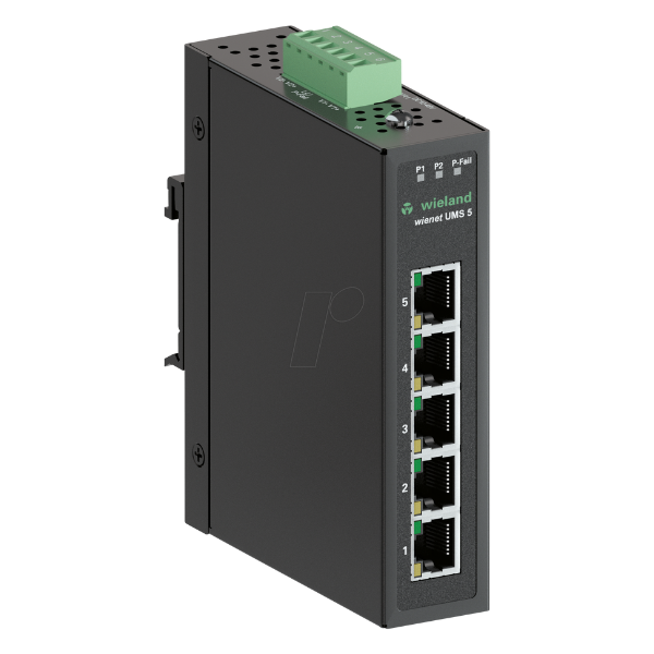 Switch industrial wieNET, 5 Puertos RJ45, 10/100 Mbps, No Gestionado, alimentación redundante, Tensión de alimentación 12 … 48 VDC, Montaje en riel DIN. Marca Wieland